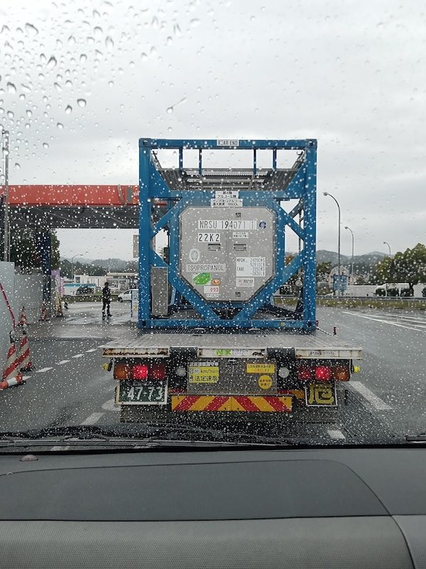 まず異様なまでの立体交差で、逆走しかねない。トンネルに次ぐトンネルも、耐用年数が来た頃は、と心配した。加えて「こんな、危険な物を積んだ車が真昼間に、」と驚いた。次いで、あるICでは小さな親切が目にとまった。