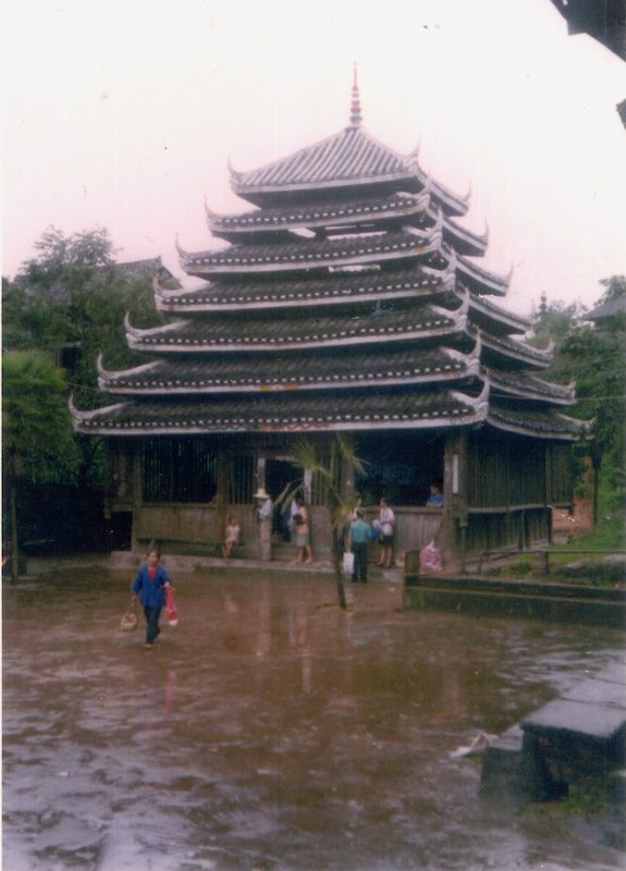 思い出したことがあった。20年近く昔のこと。中国は雲南省の少数民族の村々を、幾度かにわたって訪れたことがあった。その1つで、出くわした木造建築物のことだ。