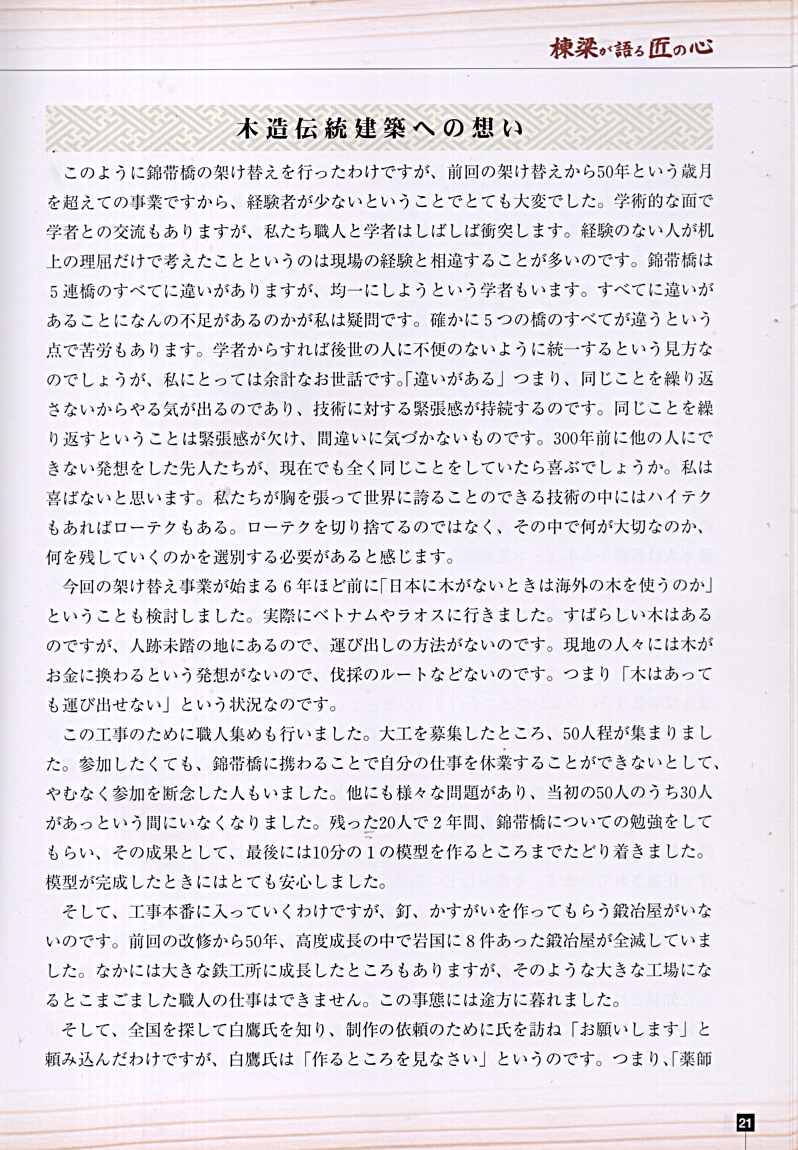 直接言葉では聞けなかったが、こうした面での歯がゆさのようなものが、「木造伝統建築へに想い」での頁にもにじみ出ていた。