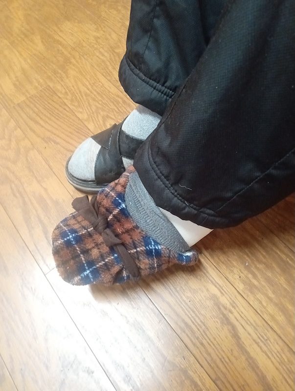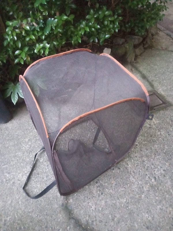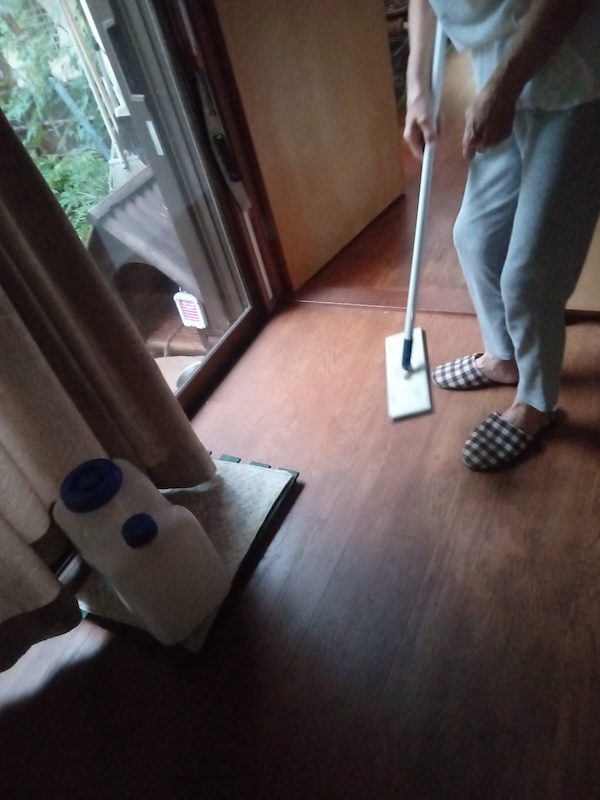 11)燃やすごみを出す(カラス除けの)袋の補修。底が擦り切れてきれたのを幸いに、妻に補修を頼んだ。トクトクと妻は取り組んだ。