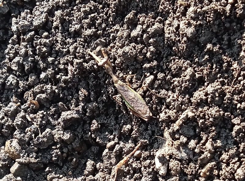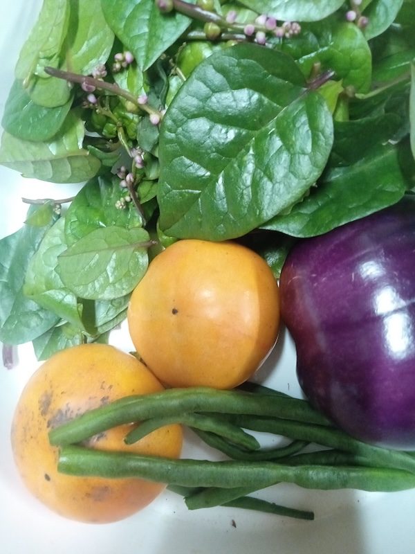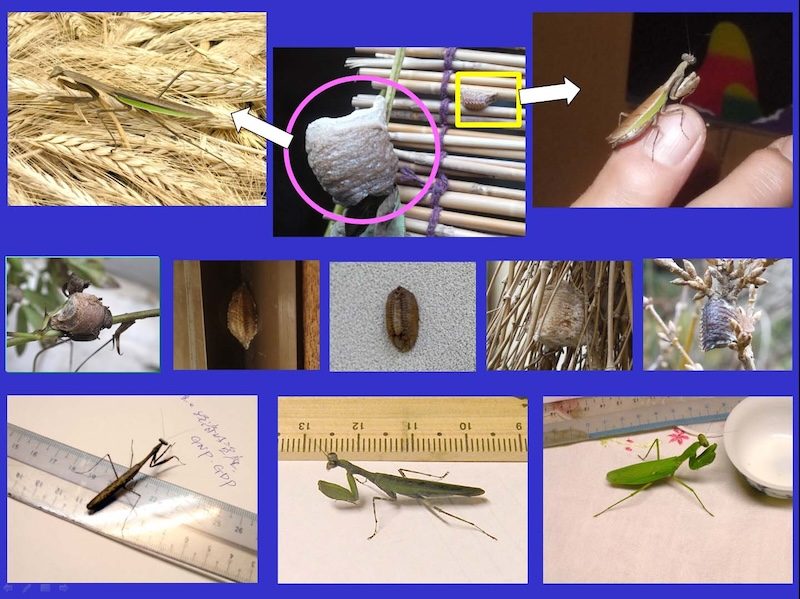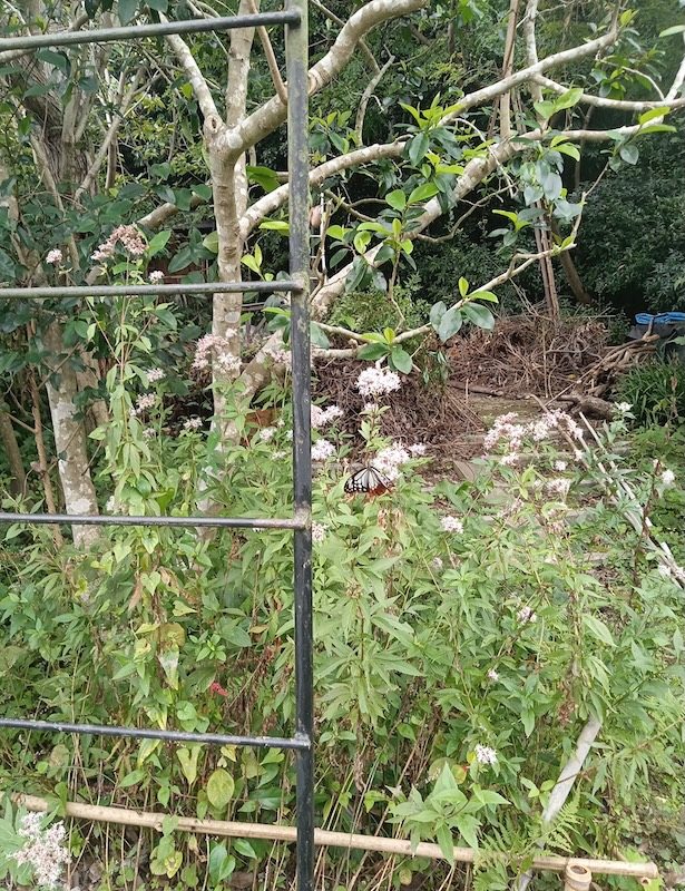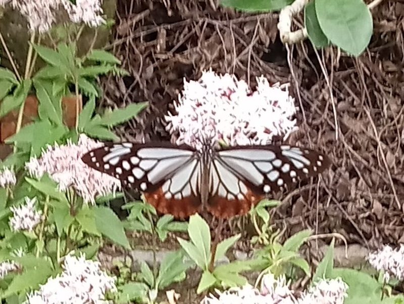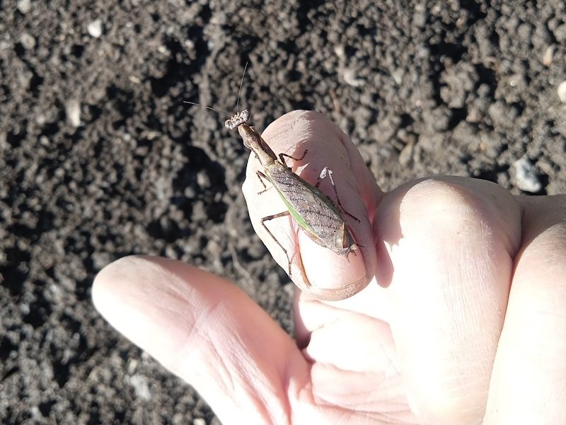 その後、居間、畑、あるいは庭で、昆虫の珍しい生態、アサキマダラの飛来、あるいはヒメカマキリなどと遭遇し、気分は少年に返っています。畑は、昇さんが、3種の夏野菜の支柱を片付け、冬野菜の畝に仕立て直し、私はスナップエンドウやルッコラの作付けや苗づくり。彗生君はアーチを立てる穴を掘り、フミちゃんと妻は除草に、と励んでいます。