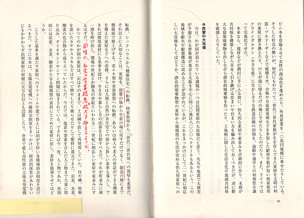 かねがね、気になっていたことがある。わが国は、敗戦で魂まで抜かれたのか、高度成長期に浮かれたのか、国民の住宅政策では、あってはなるぬ “潜在的廃棄物造り” に邁進してきたようなことをしていた。わが家は、1964年(独身の時)に、住宅金融公庫で建てた20坪の純木造住宅を、8度の増築(結婚やDIY本格化、あるいは来客を迎える身になったなど)と、数えきれない改築や補修で今がある。