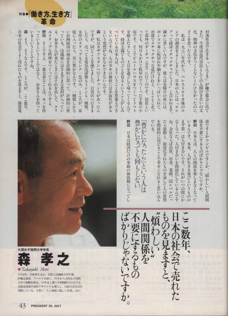 あるビジネス誌から、先生との対談を持ち掛けてもらえたことがあった。時は、不毛な、失われた10年に入っており、誠に時を得た特集であった。