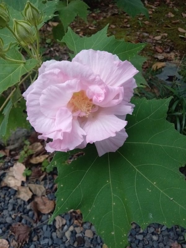 翌日から、待ち遠しい日々が続くことになった。庭ではスイフヨウ(酔芙蓉)やオレンジ色のリコリスが、畑の畝間ではホンアイ(本藍)が、そして加温しない温室では、生き残りのトウテイ(洞庭)ランが、それぞれ満開期を迎えた。