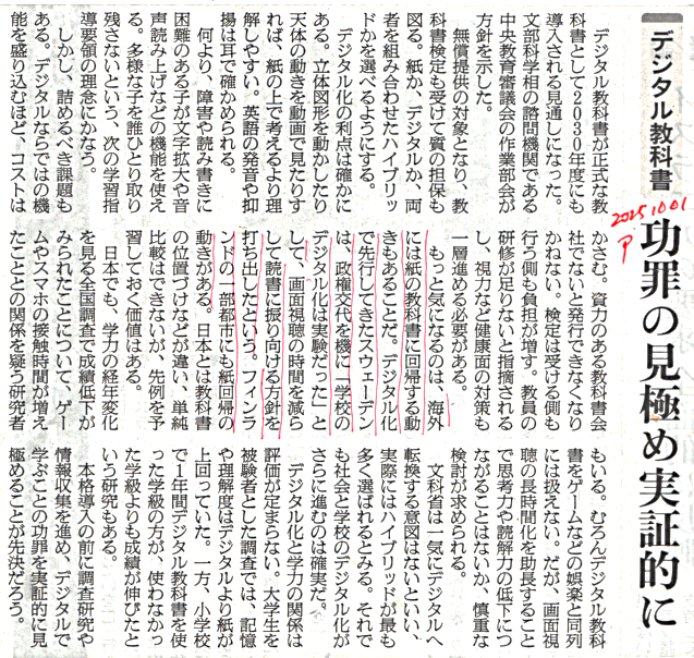 デジタル化教育で先行した北欧が、紙(文字)の教科書に回帰しそうだと知って、膝を打った。
