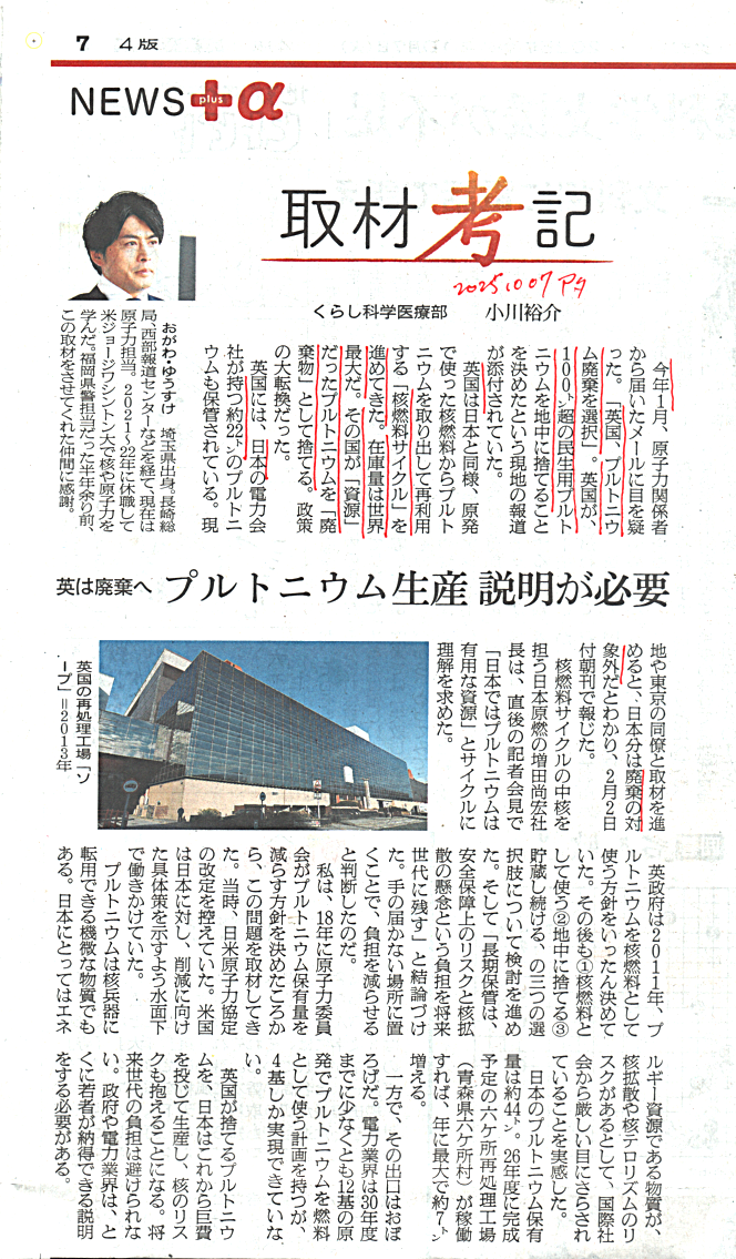 英国は、プルニウムを“未来世代への負荷”と視て、廃棄を決めた、との報道に触れた。日本は捨てられるか。戦争のための武器こそが未来世代への負荷だ(綺麗な水や空気など、生態系を豊かに保つな地球が大事だ)と言い行ってほしい。