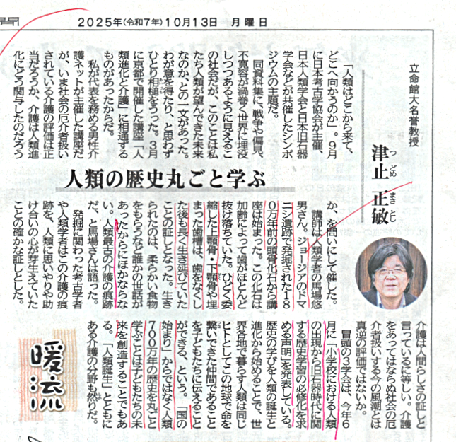人類最古の介護の痕跡は180万年前、と知って「ハテ?」と想った。もっと古いのがあって当然、と思っていたからだ。少なくとも人間の赤子は、介護がなければ生き続けられない。だから人間の赤子は笑う。介護したくなるように笑う、と聞いたことがある。それが、無償の介護をするひとへのご褒美ではないか。それは人間の本能になったのではないか。