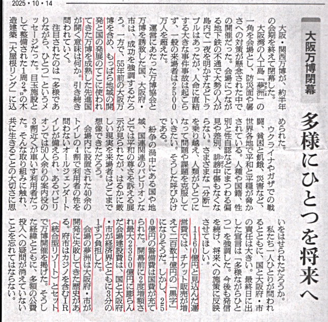 このテーマでの「活用」が「破壊」であった自覚した今日、万博はもう時代遅れではないか。いわんや、IRの地ならしの如き人騒がせはつつしむべきではなかったか。このように読み取りたくなった記事触れた。。