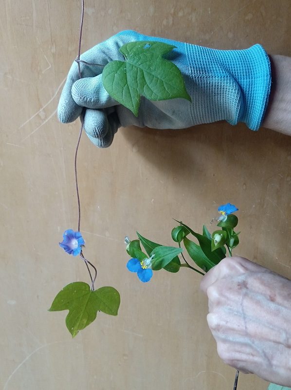 5)妻は “朝青(野生のアサガオ?)”を、別の所で見つけた。先月私が見つけた所とはかなり離れた場所で “朝青” が生えていた。わが家の庭でも自生してほしい。