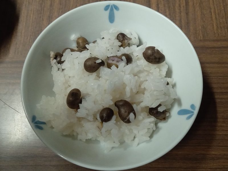 25日にムカゴを収穫すると、ムカゴ飯に。