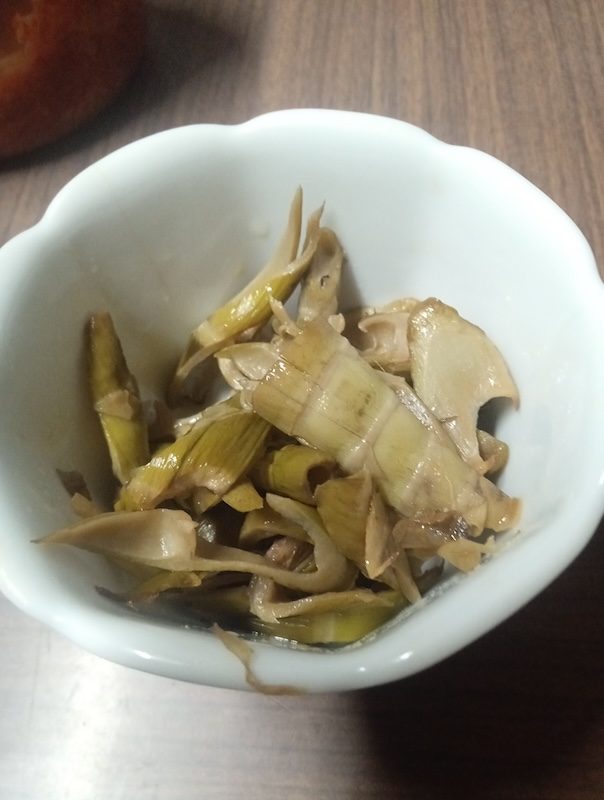 そして29日に、シホウチクの佃煮風煮物が、小量だが出た。かつては、11月の作物だっただけに、晩秋のごとくに感じた。妻が気付いた時は既に竹のように長けており、その先っぽしか生かせなかった。