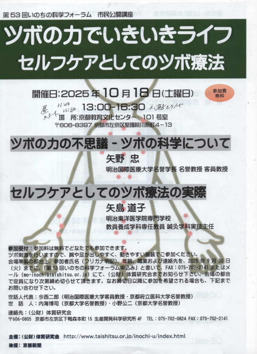 6)鍼灸の何たるかを学んだ。市民講座“命のフォーラム”に、昇さんの車を頼り、妻も同道で出かけた。明解な2人の講師のおかげで、近代医学との差異が、欧米が東洋医学を重視するようになったわけが、よく呑み込めた。