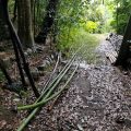 結果、タケを10数本と立ち枯れたカシの木を、父子2人で切り取った。その間の私はイノシシスロープ(と呼ぶ道)で徒長していた木々の剪定に当たった。
